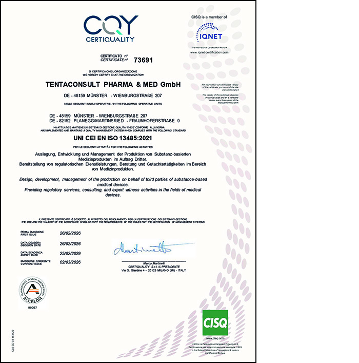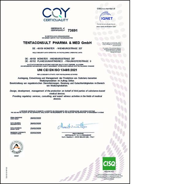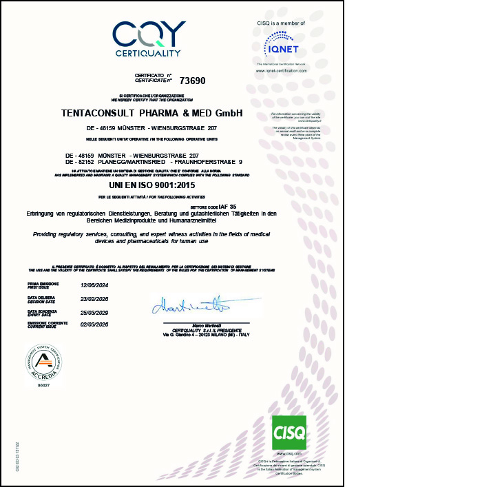 Die Leistungen und Prozesse der TentaConsult Pharma & Med genügen höchsten Anforderungen: Das bestätigen uns regelmäßig unabhängige Prüfinstitutionen.